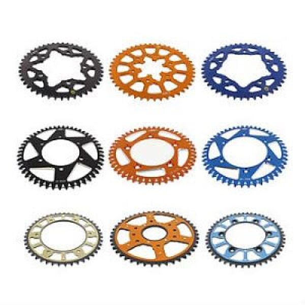 Blau, orange, schwarz, silber und viele weitere. Individualisere dein Motorrad oder Quad. Die Kettenräder sind wahlweise aus Stahl, Aluminium oder aus hochwertigem C45 Karbonstahl hergestellt. Sie entsprechen außerdem der Erstausrüsterqualität und werden nicht nur im Straßenbetrieb erprobt, sondern finden auch im Rennsport wie z.B. Moto 2, Moto 3, Superbike, Supersport ihren Einsatz.